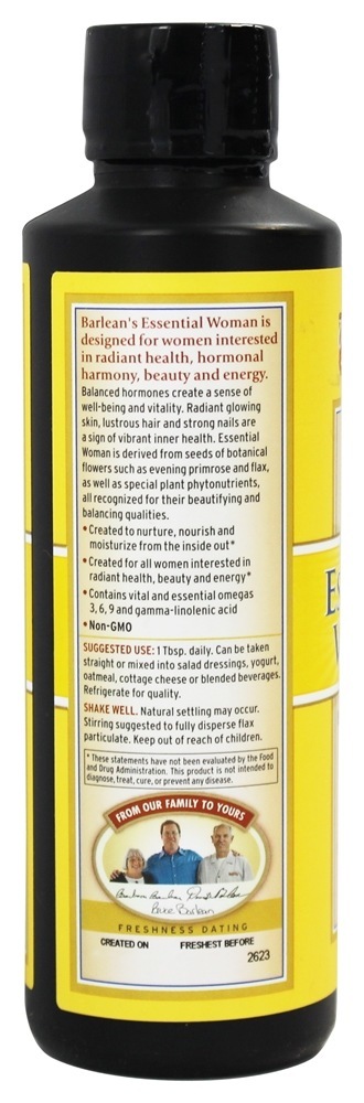 Consiga beleza e equilíbrio de dentro com Barlean’s Essential Woman. A mulher essencial do Barlean é abundante em ácidos graxos vitais e essenciais, lignanas e isoflavonas de soja. Cada gota de Barlean’s Mulher Essencial é pura e imaculada, não refinada e não filtrada para lhe trazer saúde e energia vibrantes. A beleza exterior é um reflexo da saúde interior. Pele brilhante radiante, cabelos brilhantes e unhas fortes são um sinal de saúde interior vibrante. Hormônios feminilizantes, delicadamente balanceados, proporcionam liberdade para desconfortos femininos mensais ou de meia-idade e beleza em plena floração. Barlean’s O Essencial Mulher é derivada de sementes de botânico flores tal como noite prímula e linho, como bem como especial planta phytonutirent, todos reconhecido para seu embelezamento e equilíbrio qualidades. Barlean’s O Essencial Mulher é o primeiro produto de é tipo para combinar um completo elogio de terapeuticamente benéfico nutrientes alvo para o especial e mudança necessidades de um mulher.