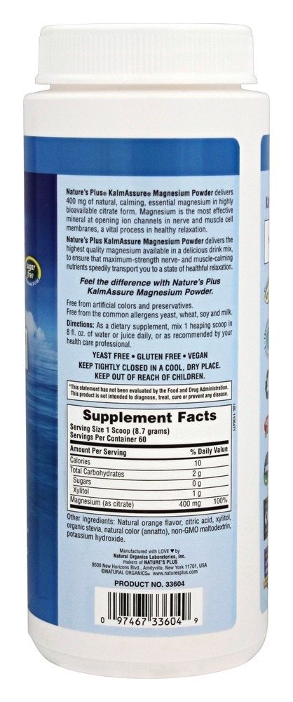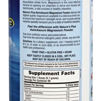 Naturezas Mais Kalm Garantir Magnésio Pó Natural Estresse Alívio é para dia ou noite usar. Naturezas Mais Kalmassure Magnésio foi projetado para ajudar você colocar estresse em segurar dia ou noite, sem fabricação você sonolento. Uma porção diária de refrescante, em pó de mistura de bebida com sabor de laranja oferece 400 mg de citrato de magnésio altamente biodisponível. E porque o magnésio é o mineral mais eficaz na abertura de canais iônicos nos nervos e músculos, você pode literalmente ter certeza de que está se dando a nutrição certa para um relaxamento saudável.