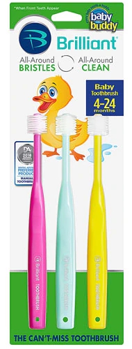 Brushing is Fun: The unique handle and patented all-around bristle design make brushing easier than ever, which means more fun than ever! Children love the Baby Buddy Brilliant!