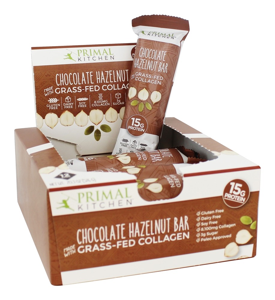 Primal Kitchen – Barras de Combustível de Colágeno Caixa Avelã de Chocolate – 12 Barras