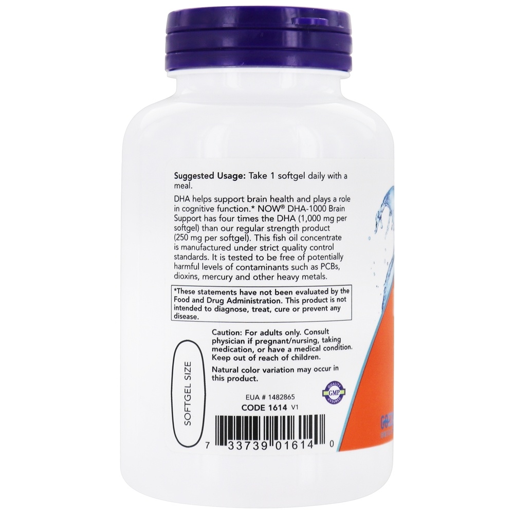 O DHA ajuda a apoiar a saúde do cérebro e desempenha um papel na função cognitiva. O suporte cerebral do NOW DHA-1000 possui quatro vezes o DHA ( 1,000 mg por softgel) do que o produto de força regular do NOW ( 250 mg por cápsula mole). Este concentrado de óleo de peixe é fabricado sob rigorosos padrões de controle de qualidade. Ele é testado para estar livre de níveis potencialmente perigosos de contaminantes, como PCBs, dioxinas, mercúrio e outros metais pesados.
