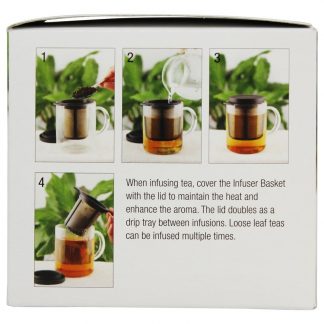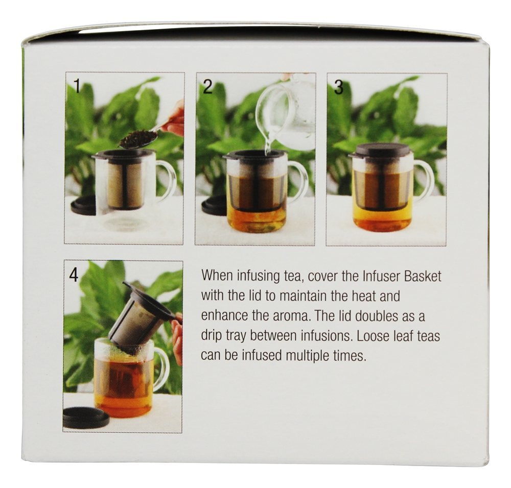 Ao infundir chá, cubra a cesta do infusor com a tampa para manter o calor e melhorar o aroma. A tampa dobra como uma bandeja de gotejamento entre infusões. Chás de folhas soltas podem ser infundidos várias vezes.