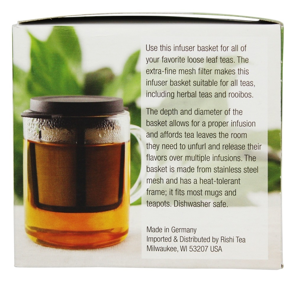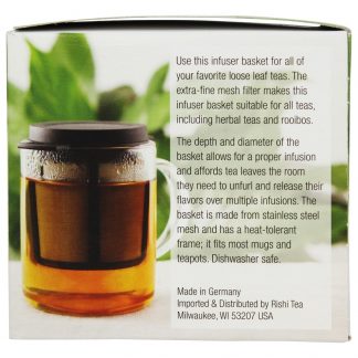 Rishi Tea Solto Folha Chá Infusor Cesta é um conveniente maneira para fermentação qualquer solto chá ou de ervas infusão. Usar Rishi Tea Solto Folha Chá Infusor Cesta para todos de sua favorito solto folha chás. O extra-multa engrenar filtrar faz este infusor cesta adequado para todos chás, incluindo de ervas chás e rooibos. O profundidade e diâmetro de o cesta permite para um adequado infusão e proporciona chá folhas o quarto eles necessidade para desfraldar e liberar seu sabores sobre múltiplo infusões. Rishi Tea Solto Folha Chá Infusor Cesta é feito de inoxidável aço engrenar e tem um calor-tolerante quadro; ele se encaixa a maioria canecas e bules.
