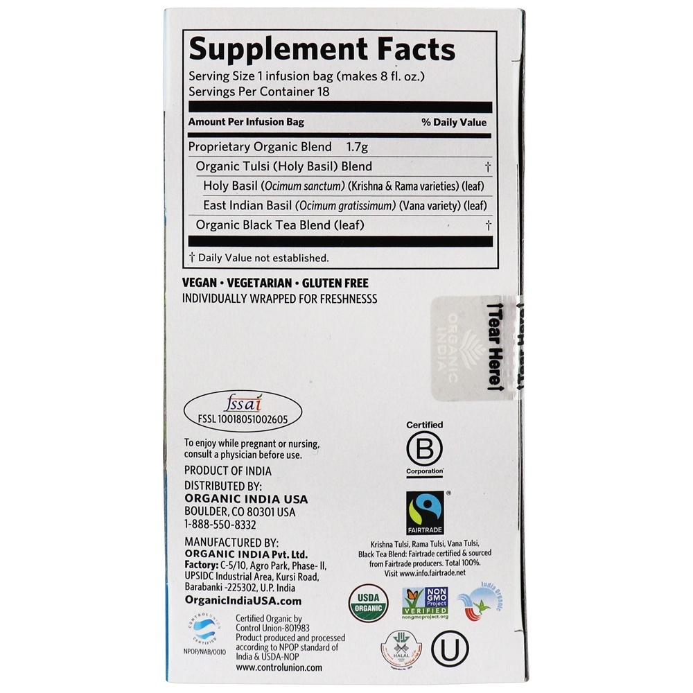 Organic India – Chá de café da manhã Tulsi – 18 Saquinhos de Chá ( 1.08 oz. / 30,6 g)