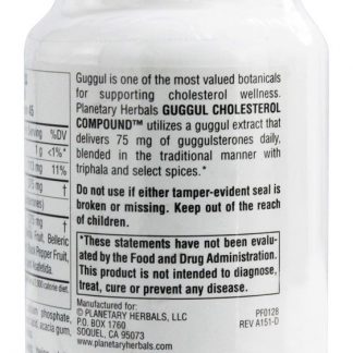 Planetary Herbals Guggul Colesterol Composto é um de o a maioria avaliado botanicals para apoio colesterol de bem-estar. Planetary Herbals Guggul Colesterol Composto utiliza um guggul extrair que entrega 75 mg de guggulsteron diário, misturado em o tradicional maneira com triphala e selecionar temperos.