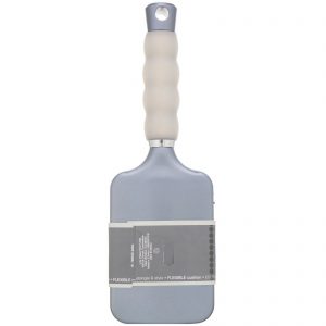 A superfície larga da raquete desembaraça e modela grandes mechas de cabelo.