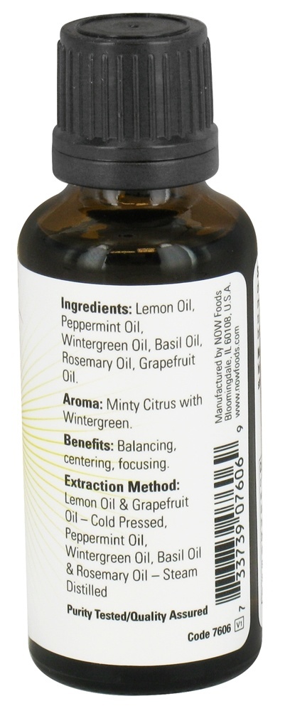 NOW Foods Mental Foco Essencial óleo Misturar tem um minty cítrico e wintergreen aroma com um equilíbrio, centralização, e focalizando efeito. NOW Foods Mistura Óleos Essenciais funciona muito bem em um difusor ou como spray de sala quando gotas 30 são adicionadas a 1 oz. de água. NOW Foods Mental Foco Essencial óleo Misturar usa tanto o frio prensado e vapor destilado métodos de extração.
