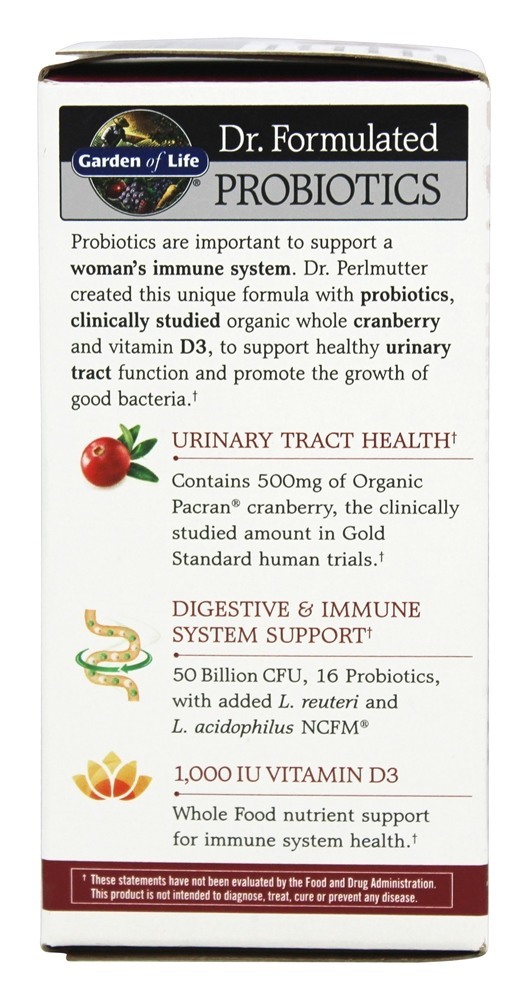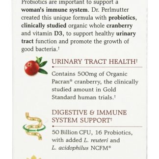 Garden of Life Dr. Formulado Probióticos Trato Urinário + é uma fórmula única com probióticos, cranberry orgânico orgânico clinicamente estudado e vitamina D3, para apoiar a função do trato urinário saudável e promover o crescimento de boas bactérias. O Dr. Perlmutter formulou o Trato Urinário + 50 Bilhões, que oferece uma fórmula conveniente, de 2 cápsula por dia, feita a partir de diversas cepas de probióticos benéficos 16 .