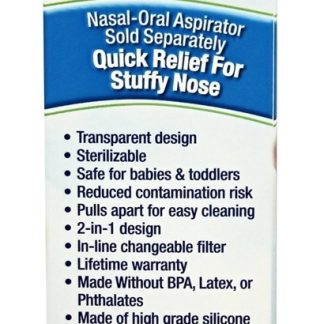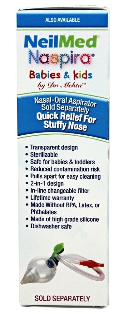 NeilMed Pharmaceuticals Os filtros de substituição de naspira fazem parte do sistema aspirador nasal-oral inovador e exclusivo da NeilMed, que pode ser usado tanto como um aspirador nasal-oral altamente eficaz quanto como uma seringa de bulbo tradicional. Como um aspirador, o Naspira permite que os cuidadores criem sucção oral forte e contínua para efetivamente remover o muco dos narizes pequenos. Seu design exclusivo contém um filtro em linha para protegê-lo do contato com muco e germes do seu filho e uma válvula unidirecional que impede a entrada de ar no nariz do seu filho. Os usuários também podem separar a porção do bulbo para uma sucção nasal manual e suave. Como todos Neilm produtos, Neilm Naspira é seguro, alto-qualidade, e eficaz.