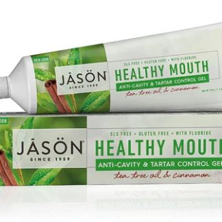 Healthy Mouth® Toothpaste guards your teeth and gums from sugar acids and tooth decay. Tea Tree Oil, a well-known antimicrobial and antiseptic agent, works with Fluoride to help defend from the bacterial growth that could lead to periodontal disease. Grapefruit Seed and Perilla Seed Extracts help reduce tartar build-up while CoQ10 and Aloe Vera Gel soothe gum irritation. A refreshing Cinnamon chill keeps your breath fresh all day. For a healthy smile and fresh breath, use JASON Healthy Mouth® Toothpaste and Mouthwash twice a day.