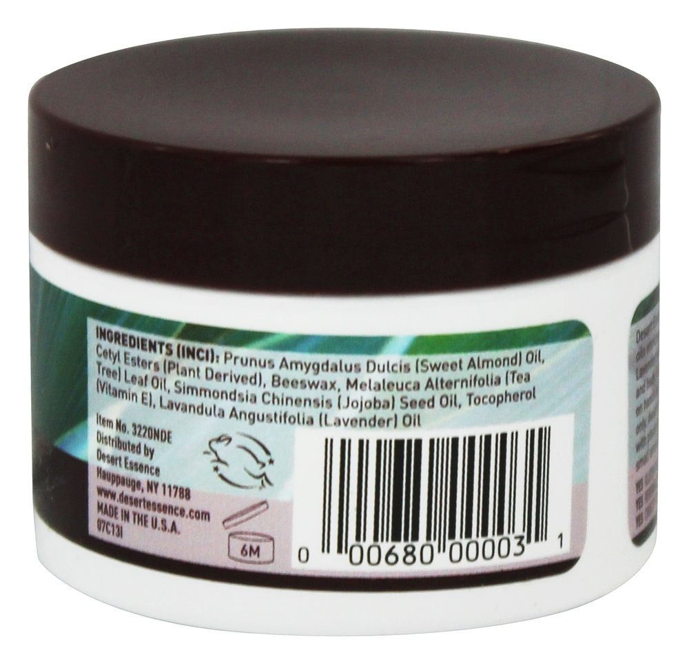 Desert Essence A pomada da pele do óleo da árvore do chá contem uma mistura de óleos naturais enriquecidos com a vitamina E e infundido com o óleo de lavanda relaxante e soothing. Desert Essence A pomada da pele do óleo da árvore do chá é uma mistura de óleos essenciais calmantes e extratos de ervas ajuda a aliviar pequenas irritações da pele e pele seca e rachada no rosto e no corpo. Desert Essence A pomada de óleo de óleo de tea tree também fornece alívio de resfriamento após a depilação, e pode ser usada para hidratar as cutículas danificadas e suas mãos e pés. Desert Essence A pomada da pele do óleo da árvore do chá é excelente para a queimadura de lâmina calmante.