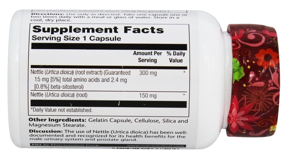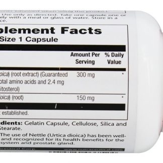 Solaray Cápsulas de Extrato de Raiz de Urtiga de Potência Garantida contêm 5 % de aminoácidos totais e 0.8 % de beta-sitosterol. O uso de urtiga (Urtica dioica) tem sido bem documentado e reconhecido por seus benefícios para a saúde do sistema urinário masculino e próstata.