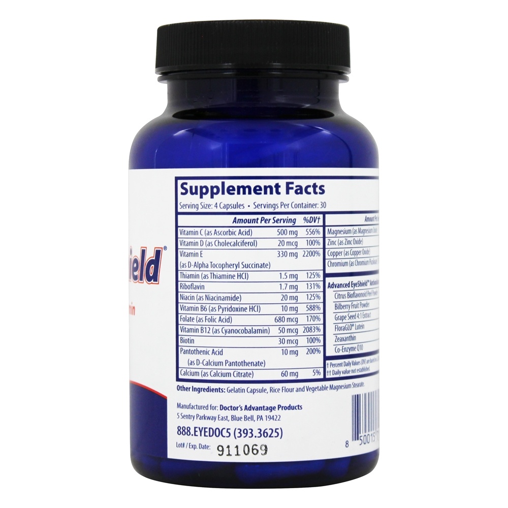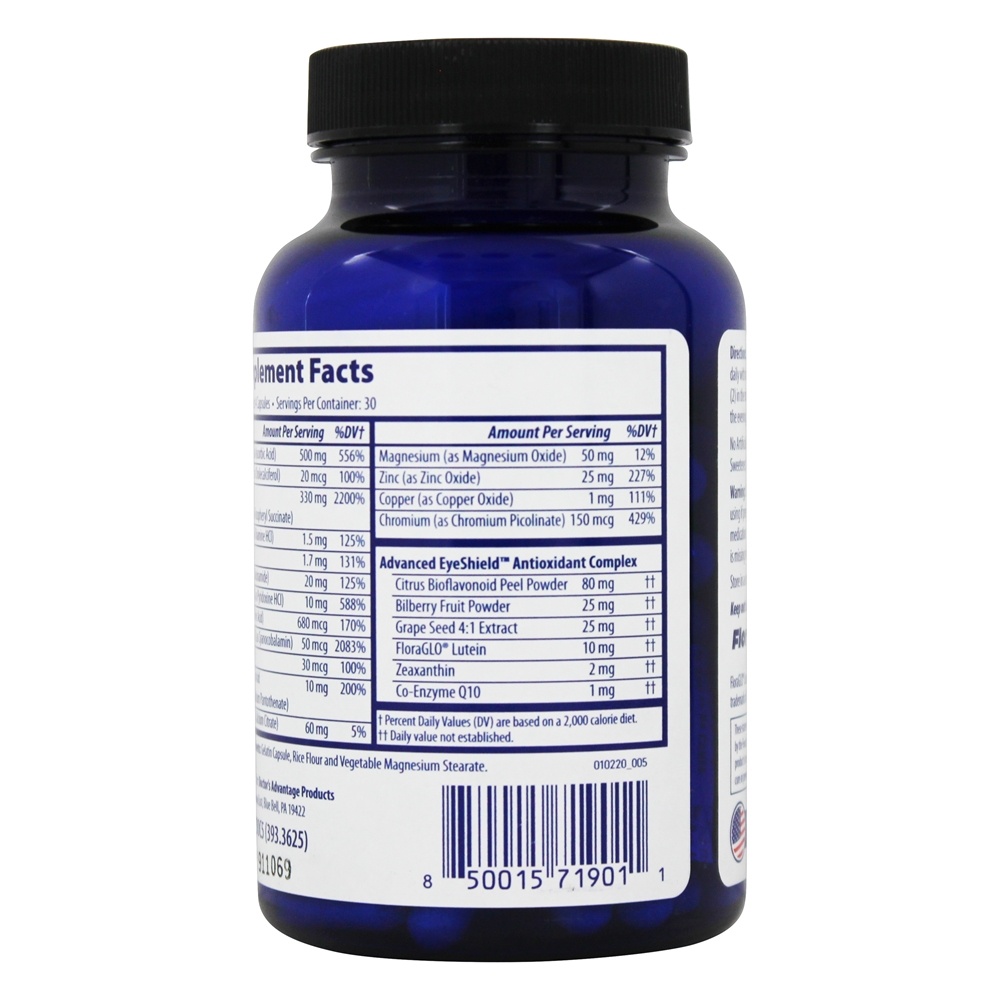 - Contém Advanced EyeShield, uma mistura proprietária de Zeaxantin, Bilberry, CoQ-10 e outros poderosos antioxidantes