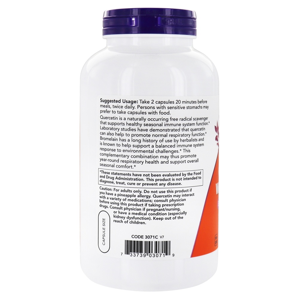 Proporcionar ao seu corpo esses poderosos benefícios para a saúde é fácil com NOW Foods. Apenas duas cápsulas vegetais de quercetina com bromelina são tudo o que você precisa para apoiar a saúde de todo o corpo e proporcionar o máximo de benefícios. Estes ingredientes trabalham com o seu corpo para criar o suporte duradouro de que necessita.