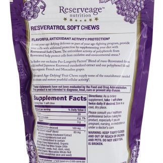 Reserveage Nutrição Resveratrol Macio Mastiga Bordeaux Baga fornecer sua células com adicional proteção por completando sua dieta com Resveratrol Macio Mastiga. A atividade antioxidante dos polifenóis do Resveratrol ajuda a proteger as células do estresse oxidativo e ambiental.