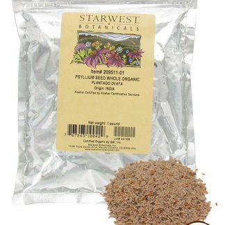 Starwest Botanicals Psyllium Semente Inteiro Orgânico é Certificado Kosher e USDA Orgânico. Starwest Botanicals Psyllium Semente Inteiro Orgânico é disponível em um um libra saco.