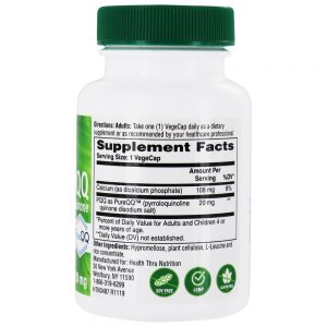 Health Thru Nutrition – Suporte à biogênese mitocondrial PQQ 20 mg . – 30 cápsulas vegetais |
