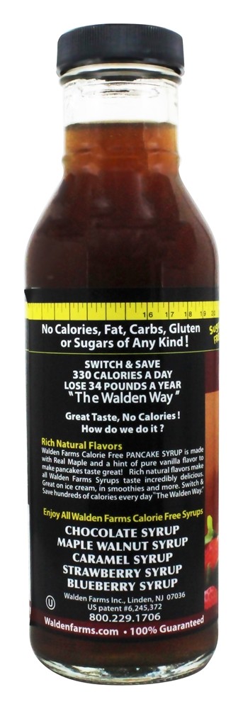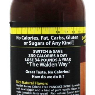 Ao comer saudável “The Walden Way”, você pode desfrutar do prazer do xarope de panqueca – sem culpa! Mudar de sua atual alto caloria, açucarado panqueca xarope que lata facilmente adicionar 220 calorias com justo 4 nível colheres de sopa e desfrutar delicioso Walden Farms Caloria Livre Panqueca Xarope. Feito com sabor de bordo real, mas sem calorias, gordura, carboidratos, glúten ou açúcares de qualquer espécie! Delicioso em seu café, sorvete, iogurte, batido ou como ingrediente em receitas de sobremesas. Troque e economize centenas de calorias a cada vez, “The Walden Way”.