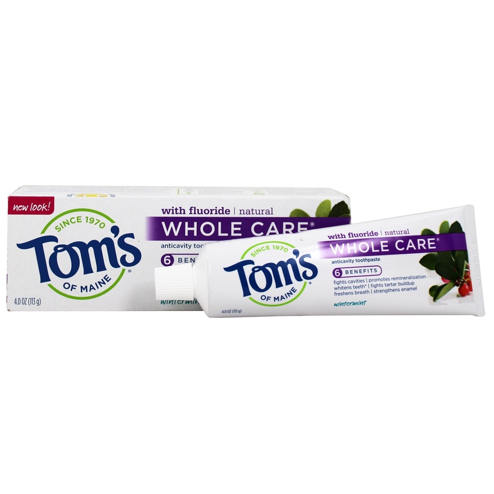 Creme dental Whole Care oferece muitas soluções em um. Ele combate cavidades, clareia com sílicas naturalmente derivadas removendo manchas superficiais, refresca a respiração e ajuda a evitar a formação de placa bacteriana e tártaro com a escovação regular. Eles produzem esse creme dental com flúor porque respeitam as diversas necessidades e interesses de seus clientes.