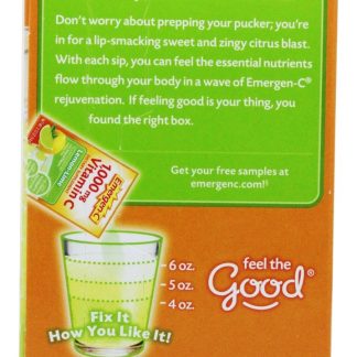 7 ascorbatos minerais oferecem 1,000 mg. de vitamina C em uma fórmula não ácida que revs seu sistema imunológico. Toneladas de vitaminas do complexo B fornecem energia natural e não cafeinada. E nós adicionamos 32 complexos minerais ativos, antioxidantes e outros micronutrientes para ajudar você a realmente sentir o bem. Emergen-C vem em 30 caixas de pacotes, com cada pacote contendo 0.3 oz. (1 porção) de mix de bebidas. Além disso, o Emergen-C vem em vários sabores.