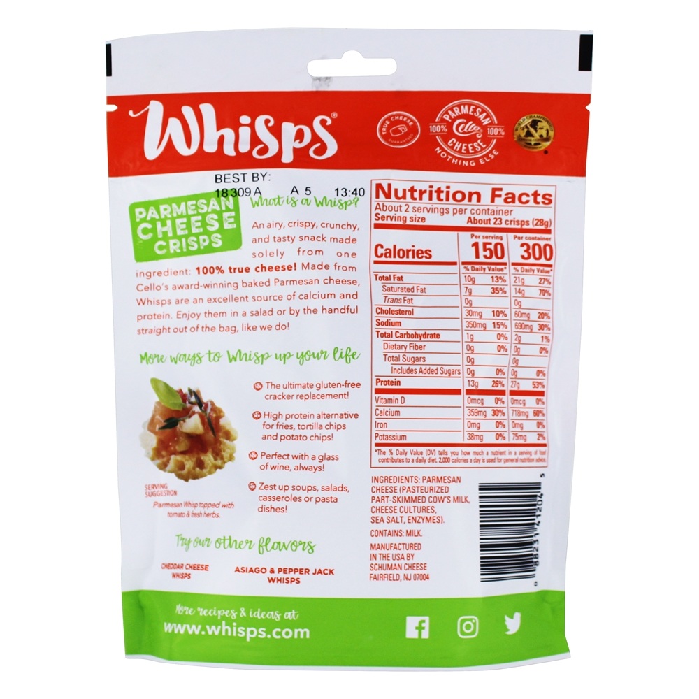 O lanche perfeito, parmesão Whisps são feitos a partir de apenas um ingrediente saudável, 100 % de queijo, nada mais. O premiado queijo parmesão da Cello é cozido em um saboroso, arejado e crocante Whispy! -Bite. Uma excelente fonte de cálcio e boa fonte de proteína, o Whisps proporciona uma experiência de comer comida saudável, livre de culpa e verdadeira. Comê-los como é ou atirá-los em uma salada ou prato de aperitivo para sabor e crise!